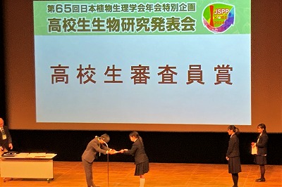 3月19日に神戸国際会議場で開催された「第65回日本植物生理学会年会 高校生生物研究発表会」で,本校から参加した3チームが研究発表を行いました。