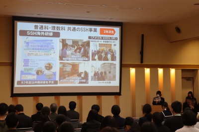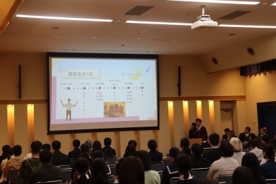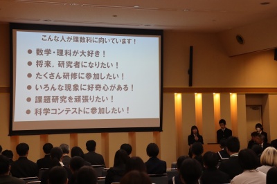 令和7年11月8日(土)に津山高校100周年記念館にて「秋の学校説明会」を開催しました。生徒会生徒による津山高校の特徴の説明、そして本校普通科・理数科2年次生によるSSHの取り組み・理数科の特色の説明の後、進路実績や令和8年度入学者選抜の概要の説明を行いました。