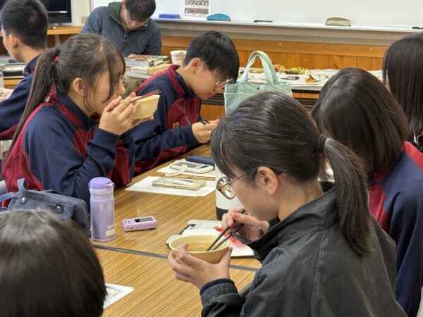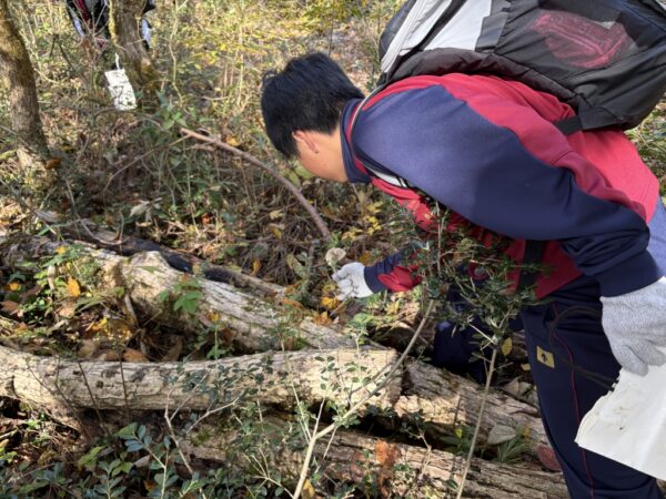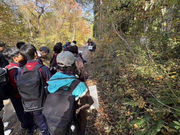 演習林ではカエデやカラマツの紅葉が見ごろで美しい景色の中での散策が楽しめました。また、キノコの採集も順調でムキタケやスギヒラタケ、スッポンタケなどの多くのキノコが採集できました。昼食には、採集した「森のフカヒレ」とも呼ばれるムキタケの美味しい吸い物を研修センターの方が調理してくださいました。新鮮で、温かく美味しいお吸い物を堪能して生徒は喜んでいました。