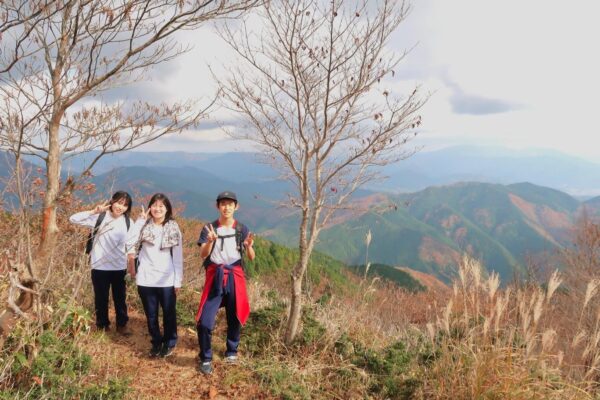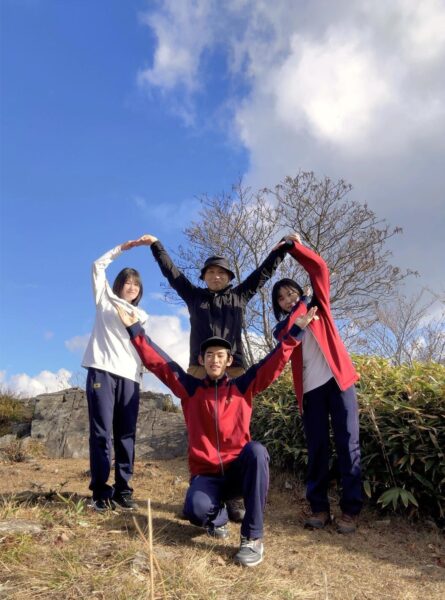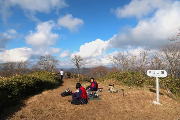 11月15日(土)の土曜講座後、山岳同好会で鏡野町の泉山に登りました。奥津の紅葉祭りが行われている時期で、泉山周辺もきれいに色づいていました。山頂では、前日に誕生日を迎えた部員のお祝いとしてお菓子をたくさん並べました。今回も笑い声の絶えない楽しい登山になりました。