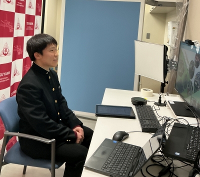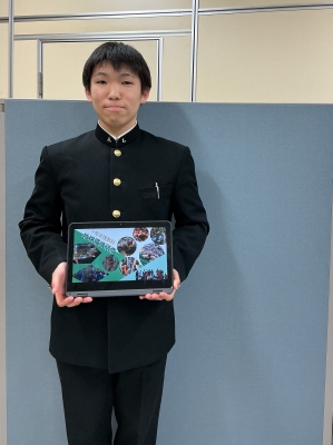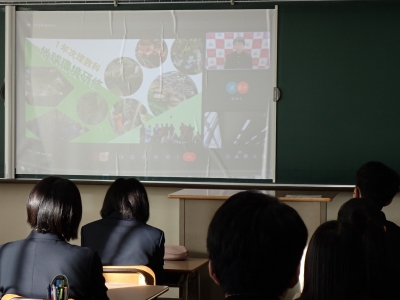 オンライン始業式後、全校生徒にSSH理数科地球環境研修のミニ発表会を行いました。