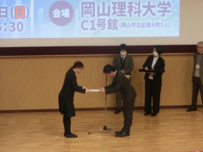 このコンテストは, 高校生(中学生を含む)を対象とし, 私たちが直面する自然の諸問題に, 科学的かつ主体的にチャレンジした研究の成果発表を通じて, 科学リテラシーの獲得とプレゼンテーション能力の向上に寄与することを目的に開催されています。本年度は, 岡山理科大学で実施されました。